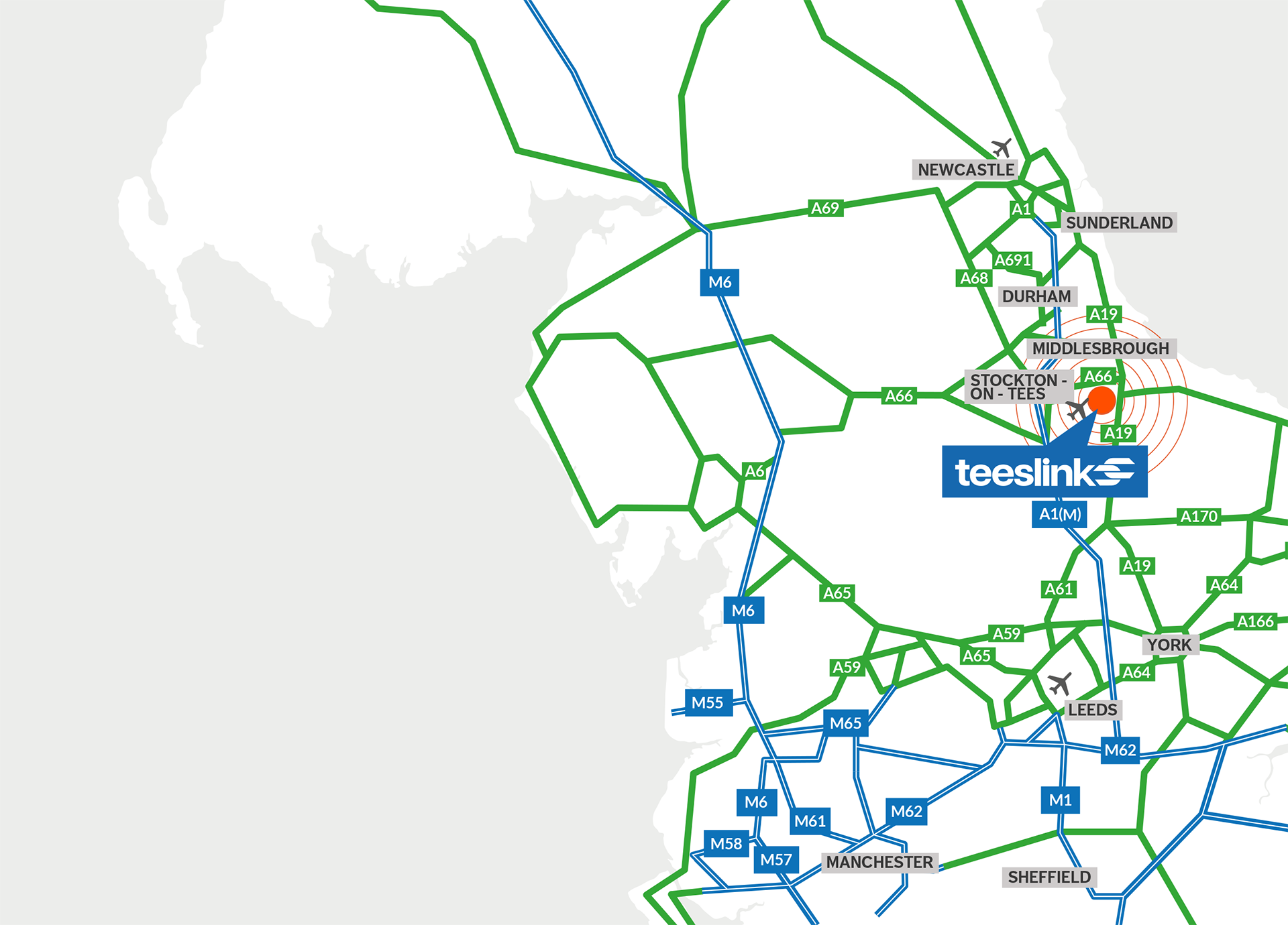 Teeslink is strategically positioned just 1.5 miles of the A66 connecting both the A19 and A1(M). The site sits less than 5 miles southwest of Stockton Town Centre and 8 miles west of Middlesbrough.